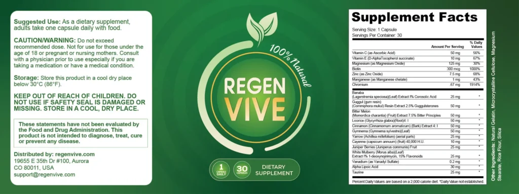 Unlike superficial solutions, RegenVive works from the inside out. Its formula combines carefully selected natural ingredients backed by scientific research, helping the body respond more efficiently to glucose and maintain stable energy levels throughout the day.